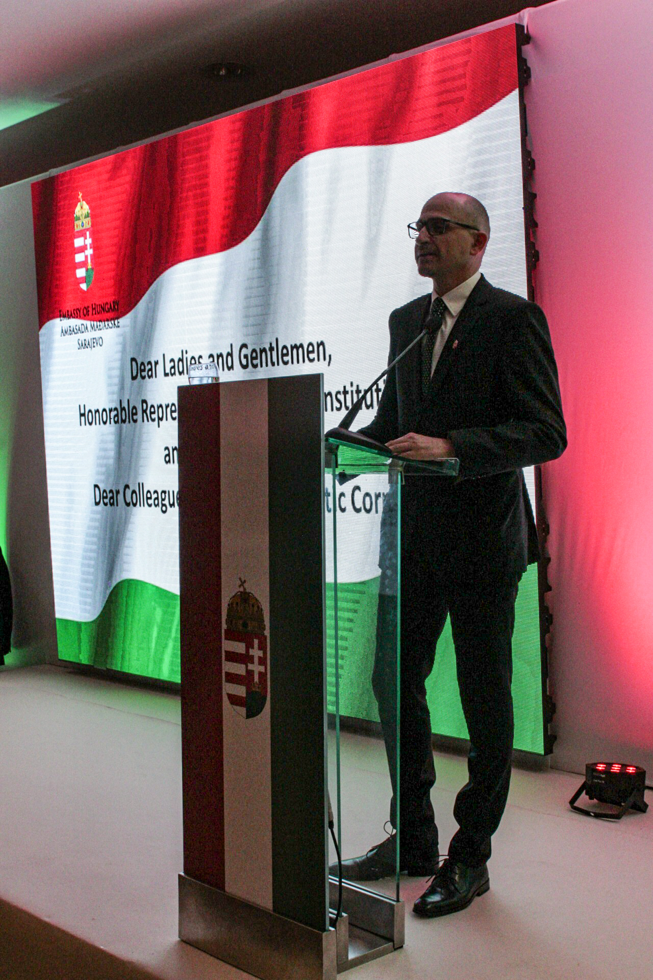 Pósa Krisztián nagykövet ünnepi beszédében kiemelte az 1956-os forradalom és szabadságharc szerepét a diktatúra elleni küzdelemben. Hangsúlyozta, Magyarország – ahogy eddig is – a jövőben is támogatni fogja Bosznia-Hercegovina csatlakozási törekvéseit. Beszédében kiemelt hangsúlyt fektetett továbbá a magyar-bosznia-hercegovinai barátságra és kapcsolatokra, valamint ismertette hazánk elmúlt időszakban elért gazdasági eredményeit és megemlítette a Nyugat-balkáni koncentrált kulturális megjelenés keretében megvalósult Magyar Kulturális Hetek rendezvénysorozatot.